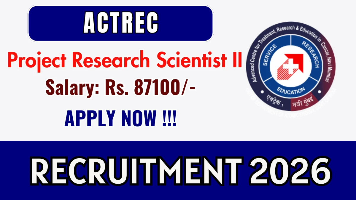Advanced Centre for Treatment Research and Education in Cancer (ACTREC) has released the ACTREC Project Research Scientist II Recruitment 2026 notification through a walk-in interview for Project Research Scientist II posts under a project-based engagement. This recruitment offers an excellent opportunity for highly qualified candidates seeking advanced research roles in biomedical and cancer research.