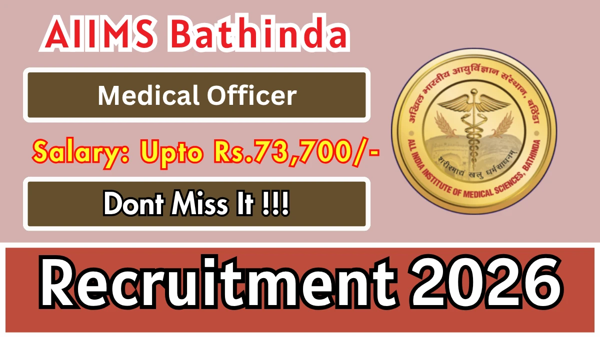 All India Institute of Medical Sciences, Bathinda (AIIMS Bathinda) Medical Officer Notification 2026 has been released on the official website. A total of 1 vacancy has been announced through the AIIMS Bathinda Recruitment 2026.