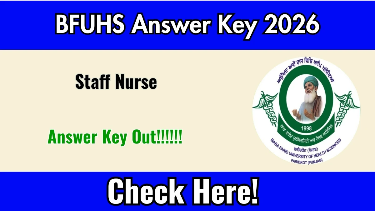 The Baba Farid University of Health Sciences, Faridkot (BFUHS) has released the Staff Nurse Answer Key 2026. Candidates who appeared for the Staff Nurse examination held on 29th March 2026 can now check and download the provisional answer key along with the question paper from the official website bfuhs.ggsmch.org or www.bfuhs.ac.in.
