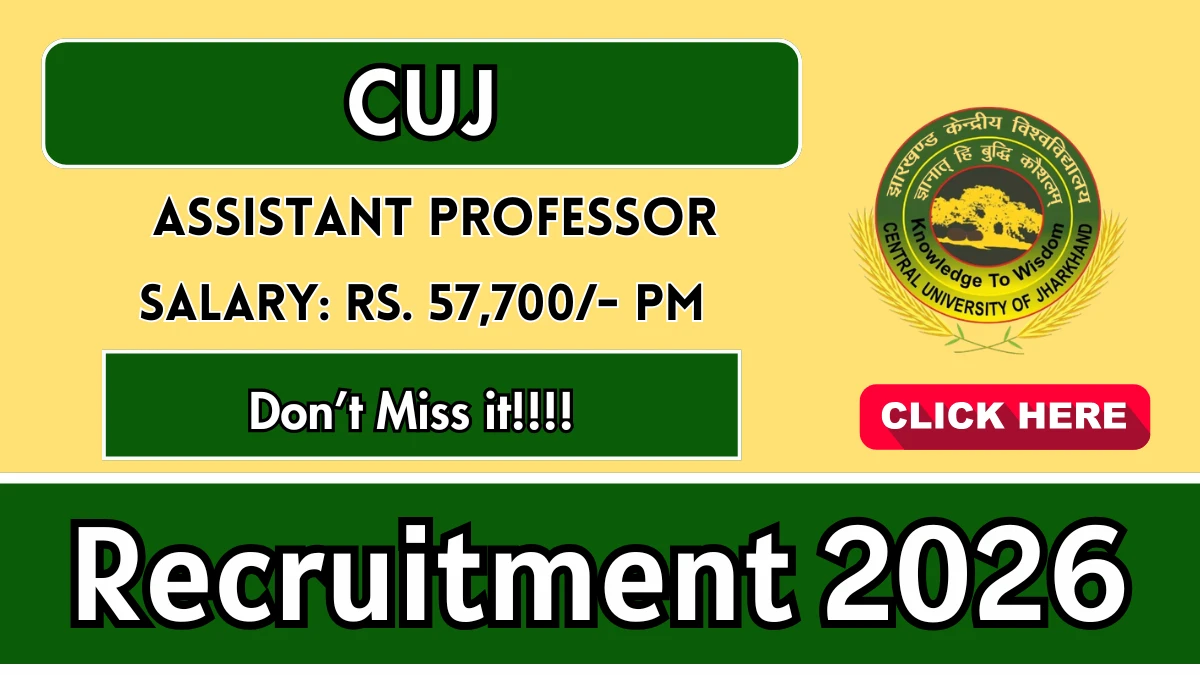 The Central University of Jharkhand (CUJ) has released the CUJ Assistant Professor Recruitment 2026 notification for 3 temporary Assistant Professor posts in the departments of Electrical and Energy Engineering and Geography.