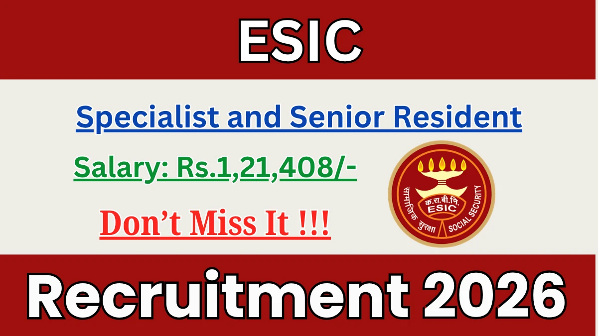 Employees State Insurance Corporation (ESIC) (ESIC) Specialist and Senior Resident Notification 2026 has been released on the official website of ESIC. A total of 12 vacancies have been announced through the ESIC Specialist and Senior Resident Recruitment 2026.
