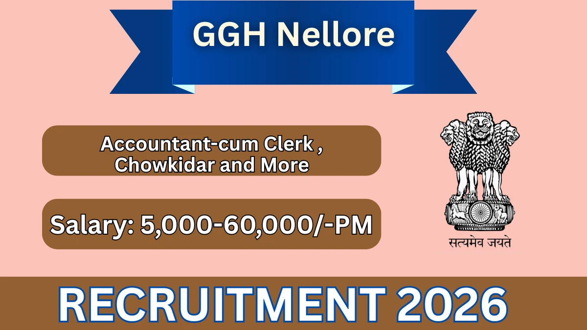 Government General Hospital Nellore (GGH Nellore) has released the GGH Nellore Recruitment 2026 notification for 14 various contractual posts including Doctor, Nurse, Counsellor, Ward Boy, Accountant-cum-Clerk, Peer Educator, Chowkidar, Housekeeping Staff, and Yoga/Music/Art Therapist roles.