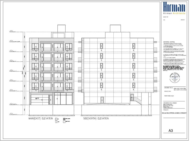 The owner of this Upper James Street property is seeking to construct a new six-storey 20-unit mid-rise rental apartment building. The plan, as submitted, show the 20 units will be evenly split between10 three-bedroom units and 10 one-bedroom-plus-den units.