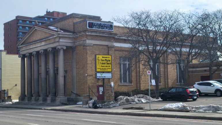 A motion to designate First Pilgrim United Church as a heritage building. The effect of the motion is to prevent the demolition of the church building which the now-small United Church congregation is trying to sell.