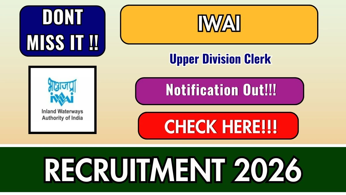 Tags: Inland Waterways Authority of India Upper Division Clerk (UDC) Recruitment 2026, IWAI Recruitment 2026, IWAI Upper Division Clerk (UDC) Jobs 2026, IWAI Upper Division Clerk (UDC) Careers, Latest IWAI Jobs, IWAI Notification 2026, IWAI Vacancy 2026, IWAI Offline Form 2026, IWAI Apply Offline, Inland Waterways Authority of India Jobs 2026