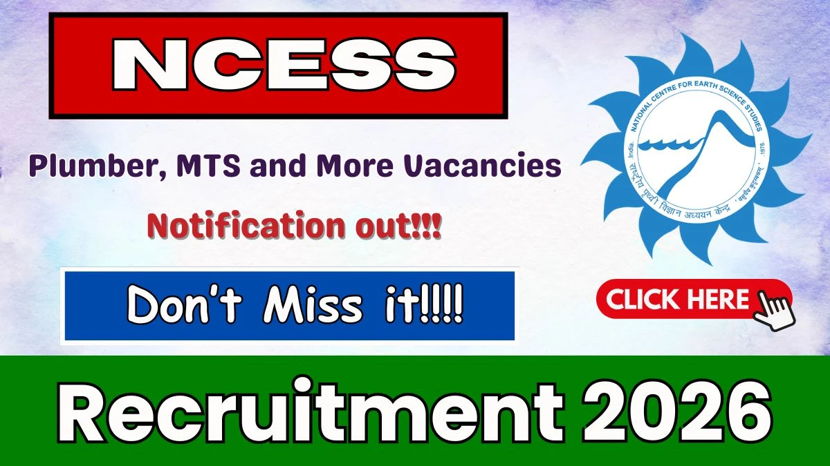 National Centre for Earth Science Studies (NCESS) Various Posts Notification 2026 has been released on the official website of NCESS. A total of 25 vacancies have been announced through the NCESS Recruitment 2026.