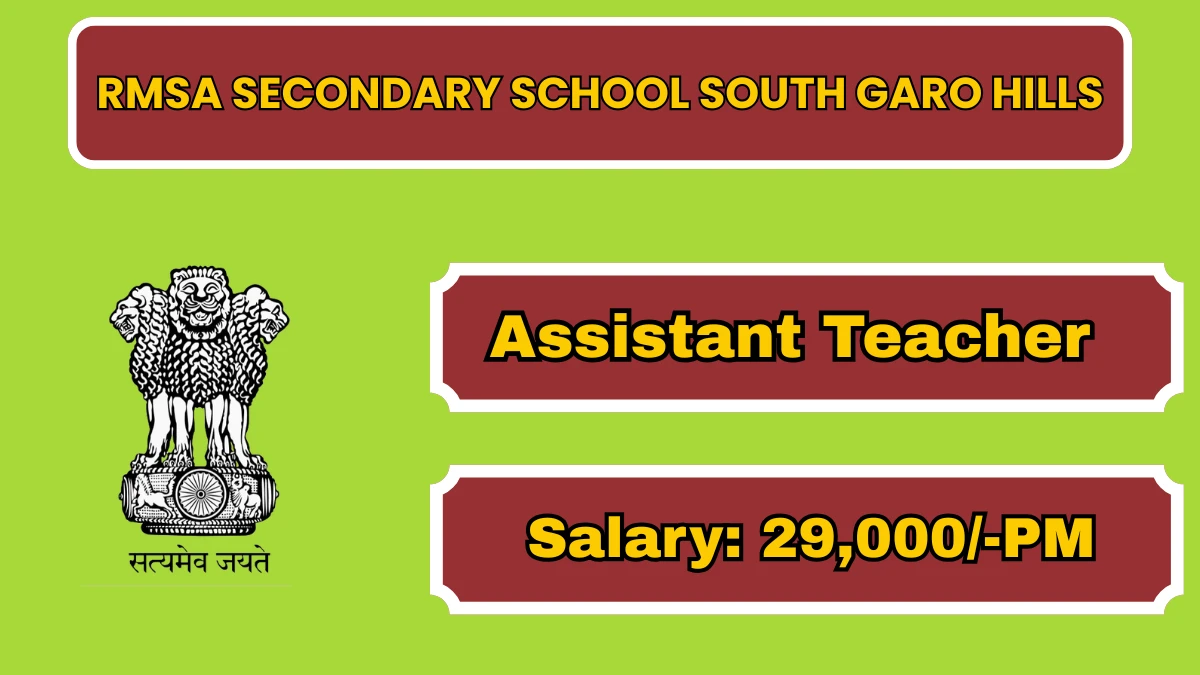 RMSA Secondary School South Garo Hills Assistant Teacher Vacancy Details 2026
