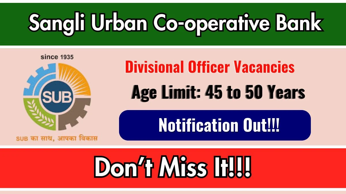 Sangli Urban Co-operative Bank Divisional Officer Recruitment 2026