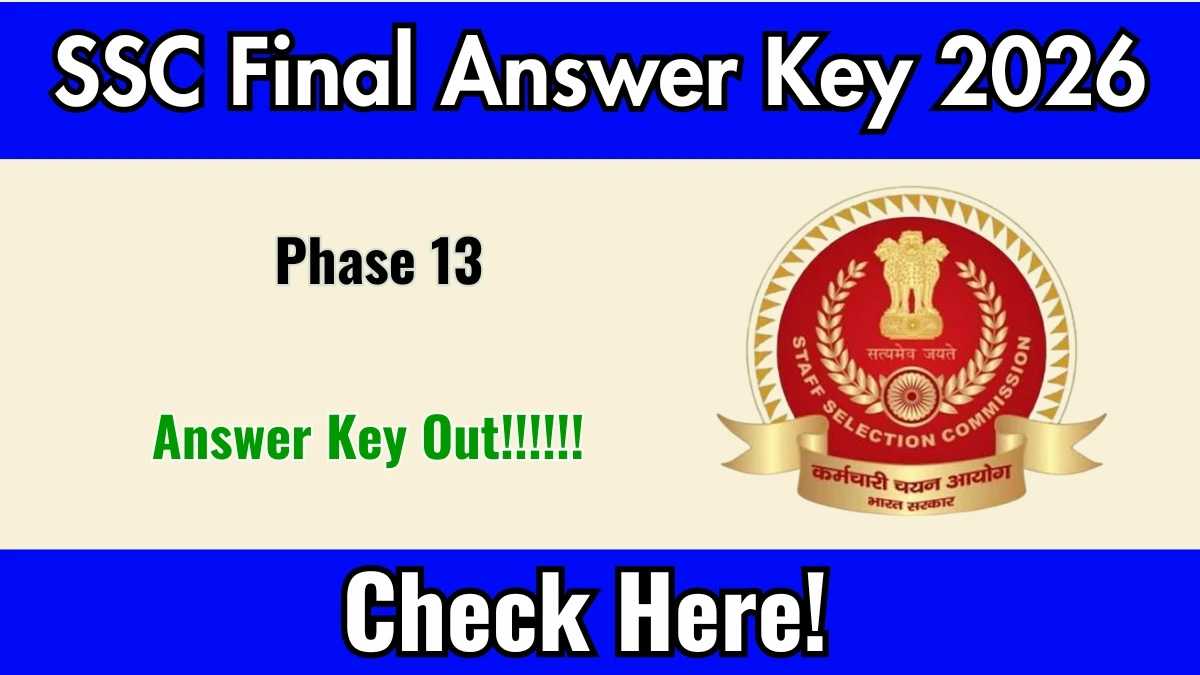 The Staff Selection Commission (SSC) has released the SSC Phase 13 Final Answer Key 2026 for Phase-XIII/2025/Selection Posts Examination. Candidates who appeared for the Computer Based Examination (various levels: Matriculation, Higher Secondary, Graduation & above) can now download the final answer key along with Question Paper cum Response Sheets from the official website ssc.gov.in.