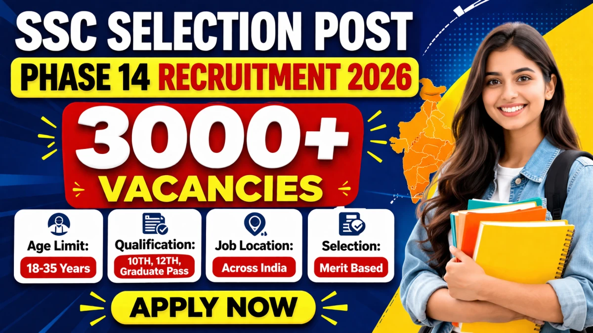 The Staff Selection Commission (SSC) Recruitment 2026 notification released for 3003 posts of Selection Post Phase 14 on 13 April 2026. Candidates with Any Graduate, 12TH, 10TH Can Apply Online. The Online application process for SSC Recruitment 2026 has started on 13-04-2026 and will remain open until 04-05-2026. The candidate shall apply online through SSC website, ssc.gov.in.