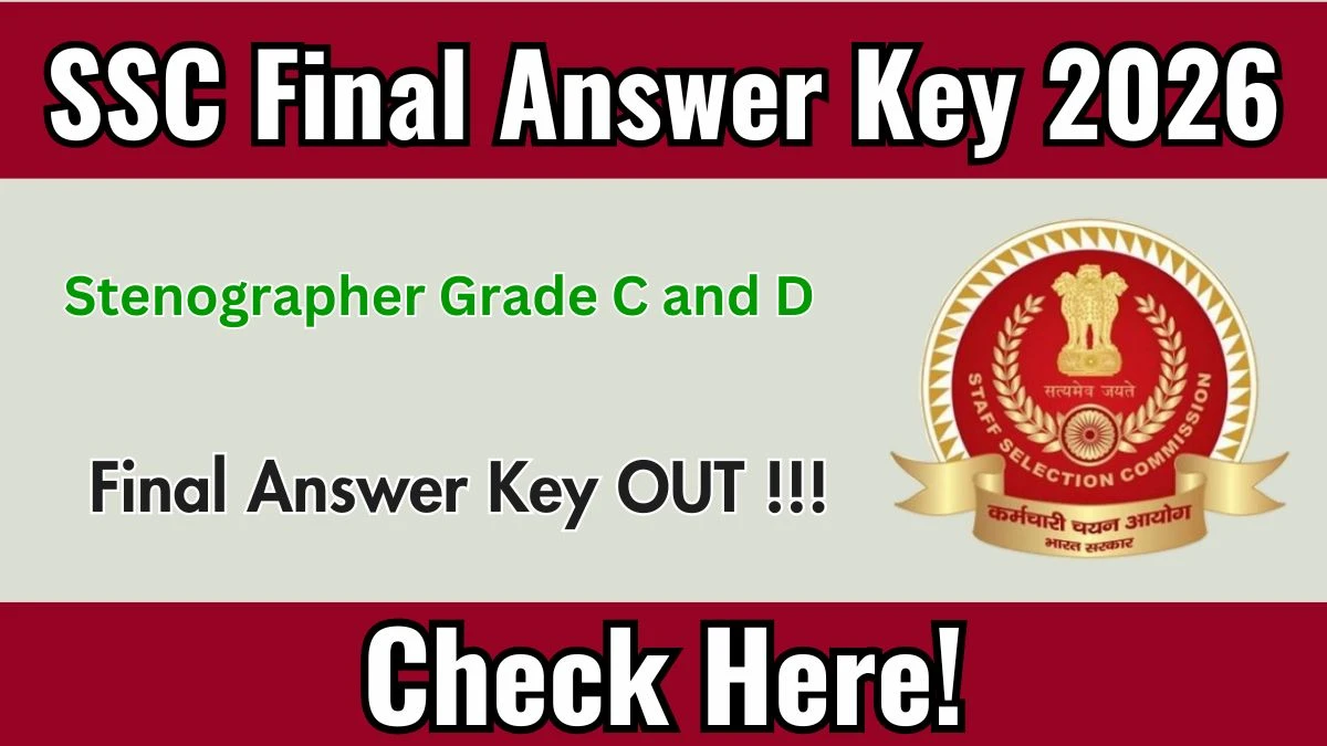 The Staff Selection Commission (SSC) has released the Stenographer Grade C and D Final Answer Key 2026. Candidates who appeared for the Stenographer Grade C and D examination held on 06-08 August 2025 can now check and download the final answer key, response sheet and marks from the official website ssc.gov.in.