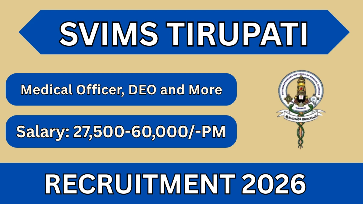 Tags: Sri Venkateswara Institute of Medical Sciences Tirupati Medical Officer, Staff Nurse & More Recruitment 2026, SVIMS Tirupati Recruitment 2026, SVIMS Tirupati Medical Officer, Staff Nurse & More Jobs 2026, SVIMS Tirupati Medical Officer, Staff Nurse & More Careers, Latest SVIMS Tirupati Jobs, SVIMS Tirupati Notification 2026, SVIMS Tirupati Vacancy 2026, SVIMS Tirupati Walkin Form 2026, SVIMS Tirupati Apply Walkin, Sri Venkateswara Institute of Medical Sciences Tirupati Jobs 2026