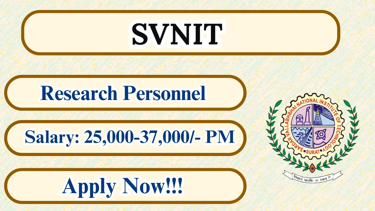 Sardar Vallabhbhai National Institute of Technology Surat (SVNIT) Research Personnel Notification 2026 has been released on April 2026 on the official website https://www.svnit.ac.in . A total of 6 vacancies have been announced through the SVNIT Research Personnel Recruitment 2026.