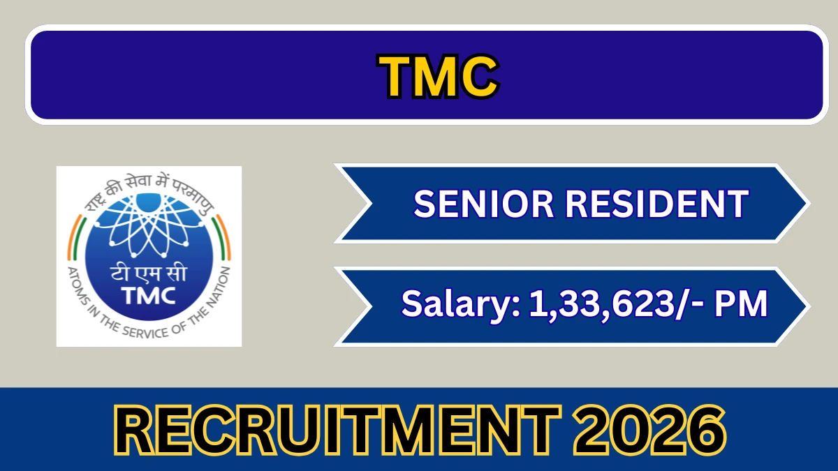 Tata Memorial Centre (TMC) Senior Resident Notification 2026 has been released on the official website of Tata Memorial Centre.Has been announced through the TMC Senior Resident Recruitment 2026.