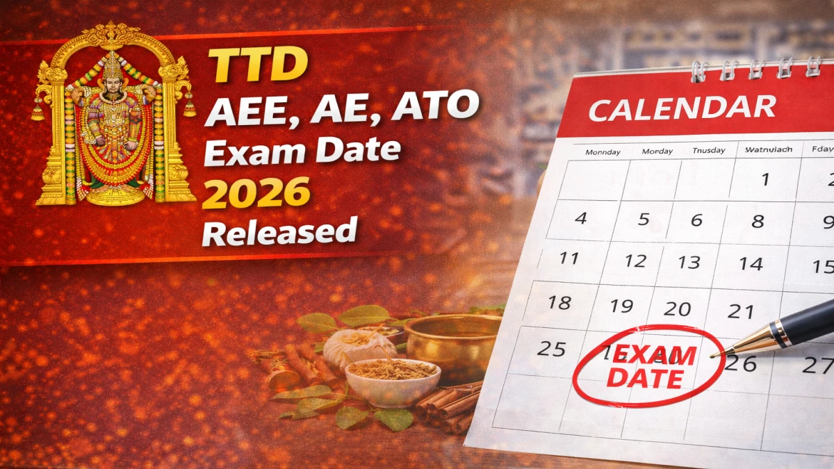 TTD Exam Date 2026: The Tirumala Tirupati Devasthanams (TTD) has officially released the exam date for the recruitment of AEE (Civil), AE (Civil), ATO (Civil), and AEE (Electrical) posts. Candidates who have applied for these posts can check the complete exam schedule below. The examinations are scheduled to be held on 10th May 2026 & 11th May 2026. All eligible candidates are advised to download their admit cards and prepare accordingly.